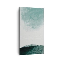 Cuadro sobre lienzo - Impresión de Imagen - Una delicada composición abstracta en tonos verdes con formas sutiles sobre un fondo claro. - 120x50cm - Un encuentro con la niebla - Decoración de pared moderna para salón y dormitorio ARTTOR