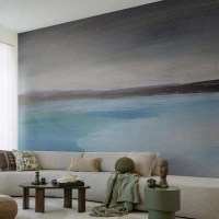 Fotomural Standard Eco - Un paisaje acuático pictórico con una línea de horizonte horizontal. - 100x70cm - Paisaje horizontal - Decoración de pared moderna para salón y dormitorio ARTTOR
