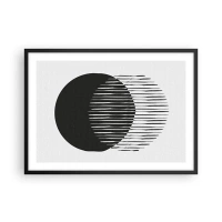 Póster en marco negro - Dos círculos superpuestos con líneas blancas y negras. - 70x50cm - Su alter ego - Decoración de pared moderna para salón y dormitorio ARTTOR