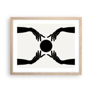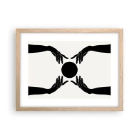 Póster en marco negro - Manos negras en una composición simétrica con una pelota. - 100x70cm - Una señal secreta - Decoración de pared moderna para salón y dormitorio ARTTOR