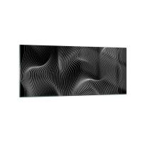 Cuadro sobre vidrio - Impresiones sobre Vidrio - Líneas blancas abstractas sobre un fondo negro - 120x50cm - La danza de la luz en el espacio - Decoración de pared moderna para salón y dormitorio ARTTOR