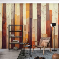 Fotomural Standard Eco - Rayas verticales que se asemejan a troncos de árboles en colores cálidos. - 100x70cm - Himno de los árboles del bosque - Decoración de pared moderna para salón y dormitorio ARTTOR