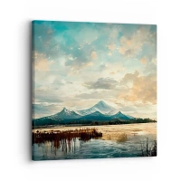 Cuadro sobre lienzo - Impresión de Imagen - Un paisaje pintoresco con una montaña y un lago tranquilo. - 50x70cm - Bajo la protección del cielo - Decoración de pared moderna para salón y dormitorio ARTTOR