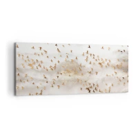 Cuadro sobre lienzo - Impresión de Imagen - Pájaros dorados contra las montañas brumosas - 160x50cm - Es hora... - Decoración de pared moderna para salón y dormitorio ARTTOR