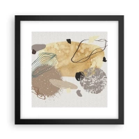 Reloj de pared - Reloj de vidrio - Una composición de formas abstractas en beige y amarillo. - 30x30cm - Plumología aplicada - Decoración de pared moderna para salón y dormitorio ARTTOR