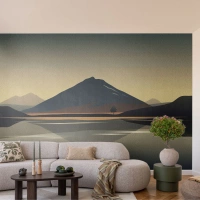 Fotomural Standard Eco - Paisaje de montaña minimalista con reflejo en el agua. - 100x70cm - Reflejo de espejo - Decoración de pared moderna para salón y dormitorio ARTTOR