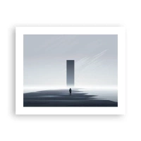Póster - Un paisaje minimalista con una silueta junto a un monolito rectangular. - 100x70cm - ¿Oportunidad o amenaza? - Decoración de pared moderna para salón y dormitorio ARTTOR
