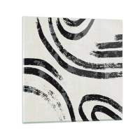 Reloj de pared - Reloj de vidrio - Líneas abstractas en blanco y negro sobre un fondo claro - 30x30cm - A medias - Decoración de pared moderna para salón y dormitorio ARTTOR