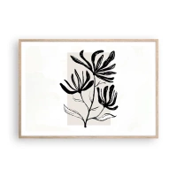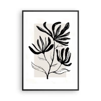 Póster en marco negro - Motivo floral minimalista en blanco y negro - 100x70cm - Esbozo para un herbario - Decoración de pared moderna para salón y dormitorio ARTTOR