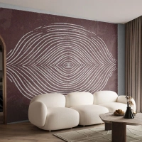 Cuadro sobre vidrio - Impresiones sobre Vidrio - Líneas simétricas en forma de ojo sobre un fondo burdeos. - 70x50cm - El espacio habla - Decoración de pared moderna para salón y dormitorio ARTTOR