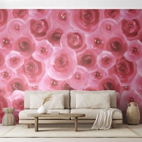 Fotomural Standard Eco - Rosas rojas y rosadas en un estilo de acuarela integral. - 100x70cm - Rosas abajo y arriba - Decoración de pared moderna para salón y dormitorio ARTTOR
