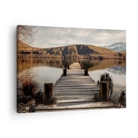 Cuadro sobre lienzo - Impresión de Imagen - Un muelle de madera sobre un lago rodeado de pintorescas colinas. - 50x70cm - Un paisaje en silencio - Decoración de pared moderna para salón y dormitorio ARTTOR