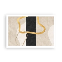 Póster - Un diseño minimalista con formas en bucle en dorado y negro. - 100x70cm - Formas en bucle - Decoración de pared moderna para salón y dormitorio ARTTOR