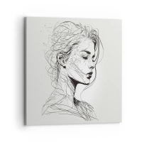 Cuadro sobre lienzo - Impresión de Imagen - Un delicado retrato de una mujer en un estilo gráfico minimalista. - 100x70cm - Retrato de ensueño - Decoración de pared moderna para salón y dormitorio ARTTOR