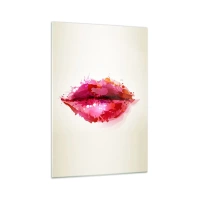 Cuadro sobre vidrio - Impresiones sobre Vidrio - Motivo abstracto de labios en tonos rosa y rojo. - 70x100cm - Un tono más rojo - Decoración de pared moderna para salón y dormitorio ARTTOR