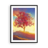 Póster en marco negro - Un árbol con hojas rojas contra el fondo del sol poniente. - 50x70cm - Un peregrino en su destino - Decoración de pared moderna para salón y dormitorio ARTTOR