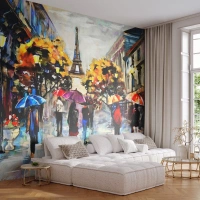 Fotomural Standard Eco - París otoñal bajo la lluvia y paraguas de colores - 100x70cm - Especialmente hermoso en otoño - Decoración de pared moderna para salón y dormitorio ARTTOR