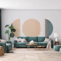 Fotomural Standard Eco - Una composición geométrica minimalista en colores pastel. - 100x70cm - Círculo tras círculo - Decoración de pared moderna para salón y dormitorio ARTTOR
