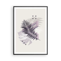 Cuadro sobre vidrio - Impresiones sobre Vidrio - Una composición minimalista con hojas y formas geométricas. - 70x100cm - La sombra de una sombra - Decoración de pared moderna para salón y dormitorio ARTTOR