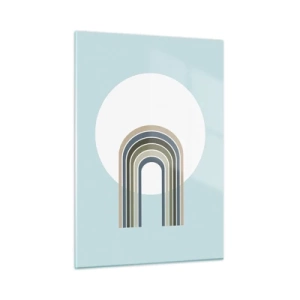Cuadro sobre vidrio - Impresiones sobre Vidrio - Una composición abstracta con arcos en delicados tonos azules y verdes. - 50x70cm - Una atracción irresistible - Decoración de pared moderna para salón y dormitorio ARTTOR