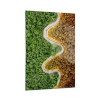 Cuadro sobre vidrio - Impresiones sobre Vidrio - Un camino sinuoso a través de un denso bosque visto a vista de pájaro. - 50x70cm - Frontera serpenteante - Decoración de pared moderna para salón y dormitorio ARTTOR