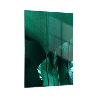Cuadro sobre vidrio - Impresiones sobre Vidrio - Hojas tropicales en intensos tonos verdes. - 50x70cm - De cara a la luz - Decoración de pared moderna para salón y dormitorio ARTTOR