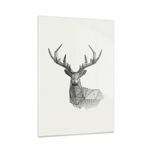 Cuadro sobre vidrio - Impresiones sobre Vidrio - Ciervo cubista hecho de formas geométricas sobre un fondo blanco. - 50x70cm - Ciervo en estilo cubista - Decoración de pared moderna para salón y dormitorio ARTTOR