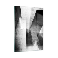 Cuadro sobre vidrio - Impresiones sobre Vidrio - Formas geométricas en una composición monocromática - 80x120cm - La estructura del espacio - Decoración de pared moderna para salón y dormitorio ARTTOR