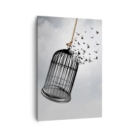 Cuadro sobre lienzo - Impresión de Imagen - Pájaros volando desde una jaula contra el cielo. - 70x100cm - Fe... Esperanza... ¡Libertad! - Decoración de pared moderna para salón y dormitorio ARTTOR