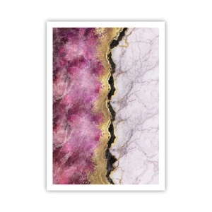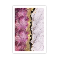 Cuadro sobre vidrio - Impresiones sobre Vidrio - Mármol abstracto en tonos rosa con acentos dorados. - 70x100cm - En la frontera - Decoración de pared moderna para salón y dormitorio ARTTOR