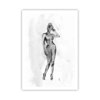Cuadro sobre vidrio - Impresiones sobre Vidrio - Boceto de la silueta de una mujer en tonos de gris. - 70x100cm - Un estudio sobre el ideal de feminidad - Decoración de pared moderna para salón y dormitorio ARTTOR