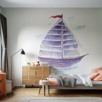 Fotomural Standard Eco - Un velero morado y blanco en un mar en calma. - 100x70cm - Velas izadas y aguas tranquilas - Decoración de pared moderna para salón y dormitorio ARTTOR