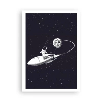 Póster en marco blanco - Surfista espacial - 70x100 cm
