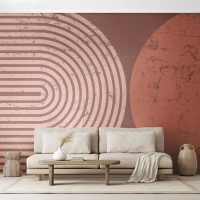 Fotomural Standard Eco - Patrón abstracto en tonos terracota con líneas y círculos. - 100x70cm - Estrecha relación - Decoración de pared moderna para salón y dormitorio ARTTOR