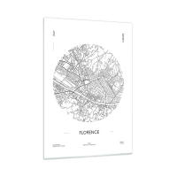 Cuadro sobre vidrio - Impresiones sobre Vidrio - Un mapa de Florencia en un estilo minimalista en blanco y negro. - 80x120cm - Anatomía de Florencia - Decoración de pared moderna para salón y dormitorio ARTTOR