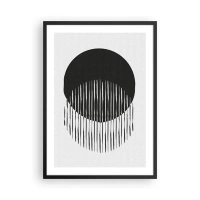 Póster en marco negro - Composición abstracta de un círculo negro y líneas verticales. - 50x70cm - Su alter ego - Decoración de pared moderna para salón y dormitorio ARTTOR