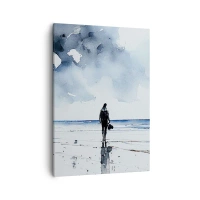 Cuadro sobre lienzo - Impresión de Imagen - Una figura en una playa en un entorno de mar tranquilo. - 50x70cm - Conversación con el mar - Decoración de pared moderna para salón y dormitorio ARTTOR