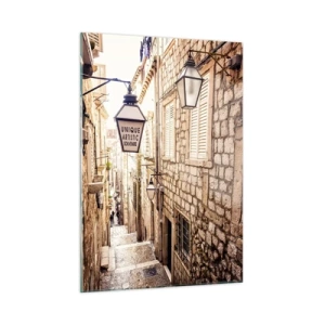 Póster - Una encantadora calle de piedra con faroles y escaleras. - 50x70cm - Un callejón encantador - Decoración de pared moderna para salón y dormitorio ARTTOR