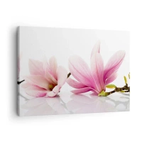 Cuadro sobre lienzo - Impresión de Imagen - Delicadas magnolias rosas sobre un fondo blanco. - 70x50cm - Suave como un soplo de primavera - Decoración de pared moderna para salón y dormitorio ARTTOR