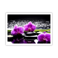 Póster - Orquídeas moradas sobre un fondo de piedras y velas en un entorno relajante. - 100x70cm - Ahogarse en la paz y la tranquilidad - Decoración de pared moderna para salón y dormitorio ARTTOR