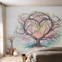 Fotomural Standard Eco - Árbol en forma de corazón de acuarela - 100x70cm - Juntos contra los vientos - Decoración de pared moderna para salón y dormitorio ARTTOR