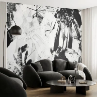 Fotomural Premium Sand - Flores abstractas en blanco y negro - 100x70cm - Otoño en negativo - Decoración de pared moderna para salón y dormitorio ARTTOR