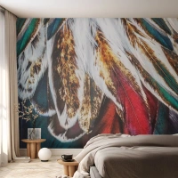 Fotomural Standard Eco - Plumas de colores en un primer plano detallado con un patrón natural. - 100x70cm - Los misterios del vuelo - Decoración de pared moderna para salón y dormitorio ARTTOR