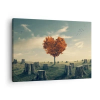 Fotomural Premium Canvas - Un árbol en forma de corazón en un campo de tocones, símbolo de esperanza. - 100x70cm - Todavía hay esperanza - Decoración de pared moderna para salón y dormitorio ARTTOR