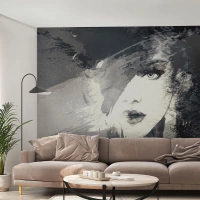 Fotomural Autadhesivo Deluxe Sticker - Tras un velo gris - cara de mujer, En blanco y negro, Ojos - 200x140 cm