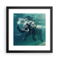 Reloj de pared - Reloj de vidrio - Un elefante nadando bajo el agua en las profundidades turquesas. - 30x30cm - A todos nos gusta nadar - Decoración de pared moderna para salón y dormitorio ARTTOR