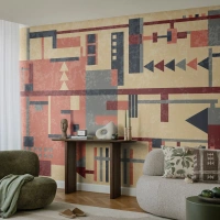Fotomural Standard Eco - Abstracción geométrica en estilo retro - 100x70cm - Una combinación de verticales y niveles - Decoración de pared moderna para salón y dormitorio ARTTOR