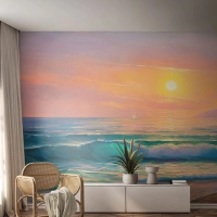 Fotomural Standard Eco - Una pintoresca puesta de sol sobre el mar con olas. - 100x70cm - El canto turquesa de las olas - Decoración de pared moderna para salón y dormitorio ARTTOR