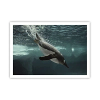 Póster - Un pingüino sumergiéndose en las profundidades del agua helada. - 100x70cm - Bienvenido a mi mundo - Decoración de pared moderna para salón y dormitorio ARTTOR