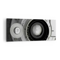 Cuadro sobre lienzo - Impresión de Imagen - La lente de una cámara antigua - 120x50cm - Una historia de Hollywood - Decoración de pared moderna para salón y dormitorio ARTTOR
